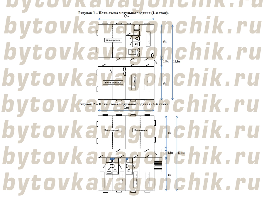 2.Блок –модуль 11,8*9,6*2,5м  из  БК 5,0*2,4*2,5 -8шт. (2-й этаж)